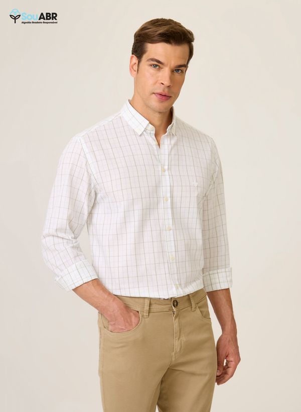 Confeccionada em tecido plano, a Camisa possui modelagem Slim Fit, padronagem Xadrez, colarinho Button Down, mangas longas com punhos, vista frontal com fechamento por botões e barra levemente arredondada com acabamento pespontado.