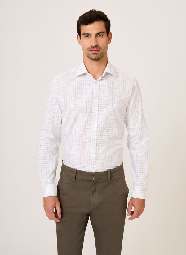 Confeccionada em tecido plano, a Camisa possui modelagem Slim Fit, colarinho Firenze, mangas longas, punho chanfrado com abotoamento, padronagem Xadrez, detalhe logo bordado no peito, vista frontal por fechamento em botões e acabamento pespontado.