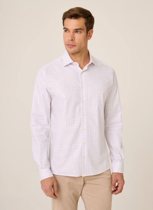 Confeccionada em tecido plano, a Camisa possui modelagem Slim Fit, colarinho Firenze Slim, mangas longas, punho redondo com abotoamento, padronagem Xadrez, detalhe logo bordado no peito, vista frontal por fechamento em botões e acabamento pespontado.