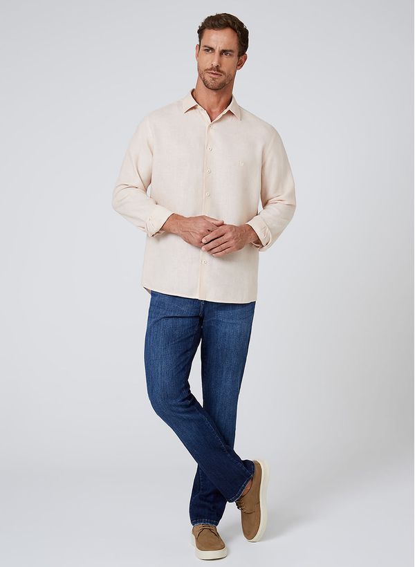 A Camisa Slim Linenblend Dudalina é ideal para um guarda-roupa versátil nos dias mais quentes do ano. A peça pode ser combinada com calças jeans e mocassins.