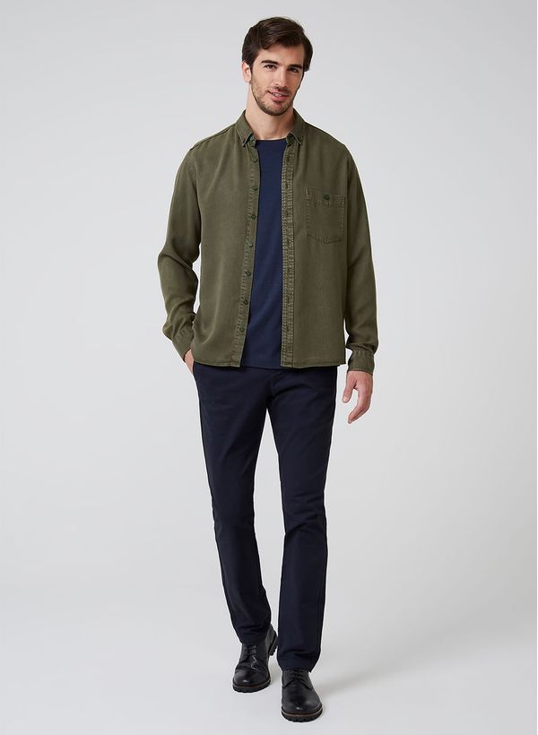 Confeccionada em liocel, a Camisa possui modelagem Slim, colarinho Button Bown, bolso frontal, fechamento frontal por botões, mangas longas e punhos redondos.