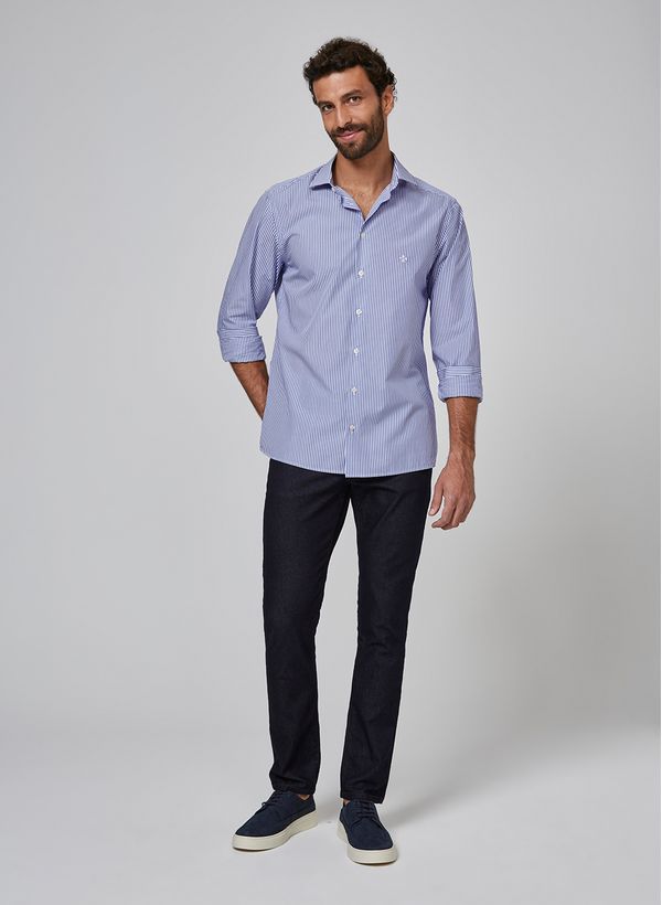 Unindo conforto e elegância, a Camisa Slim Listrada Fio 100 é uma peça essencial que transita facilmente entre o estilo casual e o formal. Para um look casual, aposte em combiná-la com calças jeans Slim e adicione botas ou tênis de couro para finalizar o visual.