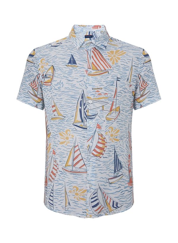 Confeccionada em tecido plano, a Camisa possui modelagem slim, colarinho lucca, mangas curtas, fechamento frontal por botões, logo frontal bordado, barra arredondada e acabamento pespontado.