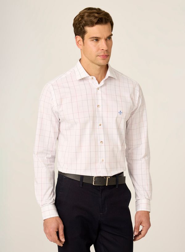 Confeccionada em tecido plano, a Camisa possui modelagem Slim Fit, estampa xadrez, colarinho Firenze Slim, mangas longas, punhos, detalhe de logo bordado localizado, fechamento por botões e acabamento pespontado.