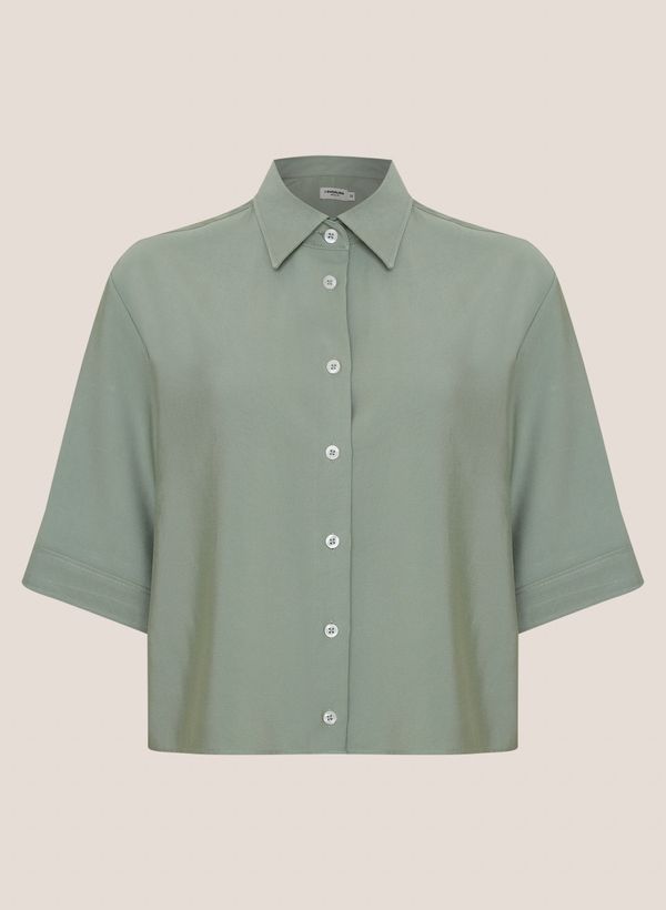 Confeccionada em tecido plano, a Camisa possui modelagem Special Fit, colarinho Tradicional, mangas curtas, comprimento Cropped, detalhe logo em bordado deslocado e vista frontal por fechamento em botões.