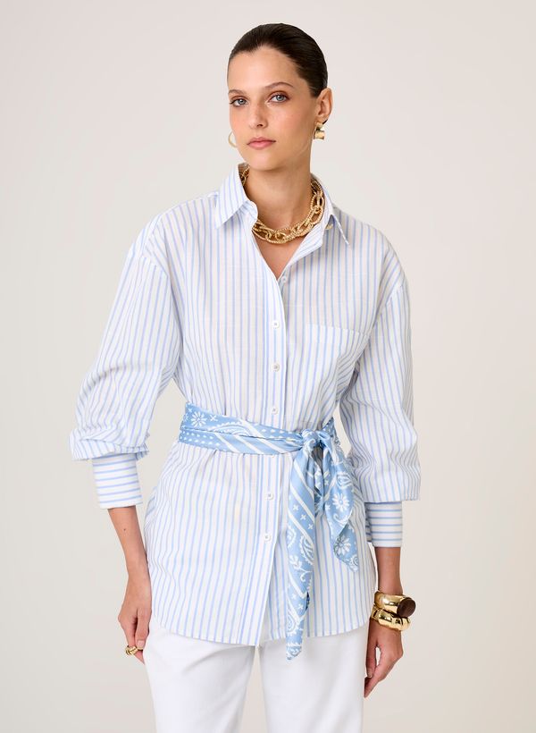 Confeccionada em tecido plano, a Camisa possui modelagem Special Fit Oversized, colarinho Tradicional, mangas longas, punho diferenciado com abotoamento, padronagem Listrada, detalhe logo em metal nas costas, vista frontal por fechamento em botões e acabamento pespontado.