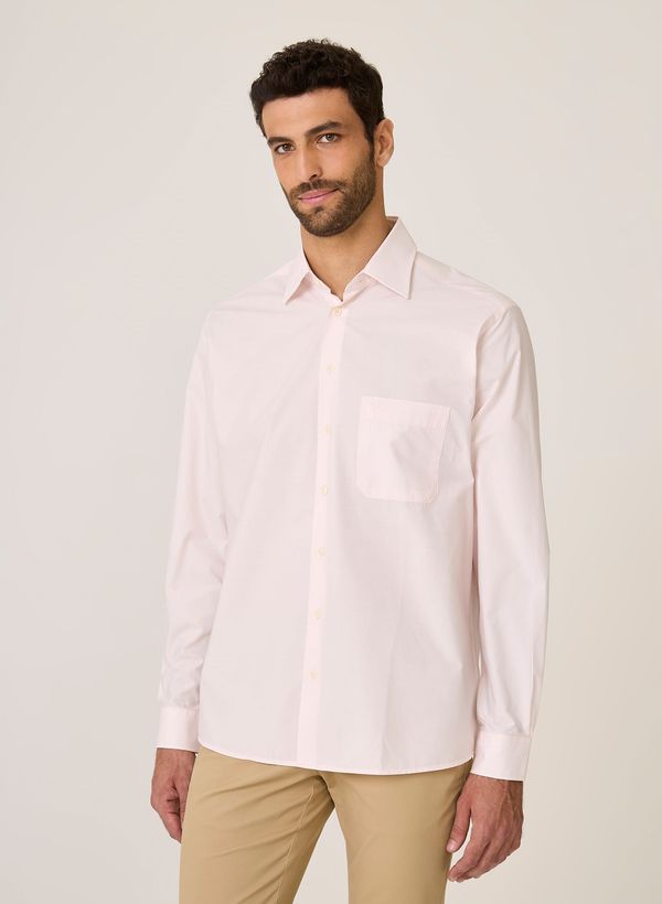 A Camisa é confeccionada em tricoline de algodão, possui modelagem Comfort, colarinho Clássico, mangas longas com abotoamento nos punhos, fechamento frontal por botões, bolso frontal com detalhe de logo aplicada e acabamento pespontado.