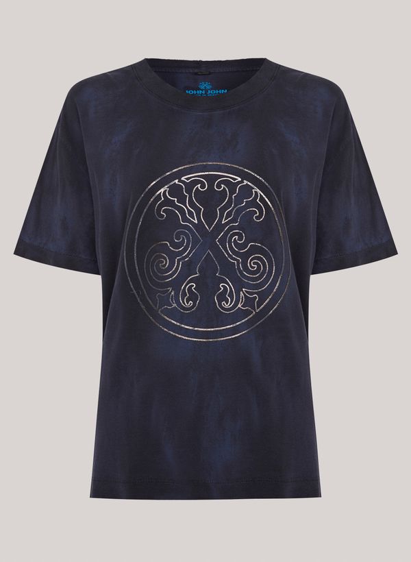 Confeccionada em malha com lavagem marmorizada, a Camiseta possui modelagem ampla, gola careca, estampa frontal em foil metalizado, mangas curtas e acabamento pespontado.