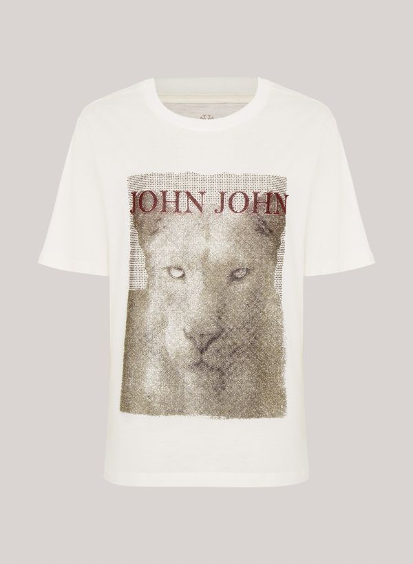 Confeccionada em malha, a Camiseta possui modelagem ampla, gola careca, estampa frontal em técnica de bright caviar, mangas curtas e acabamento pespontado.