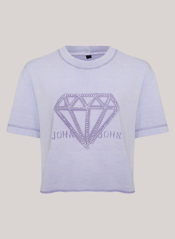 Confeccionada em malha com lavanderia estonada, a Camiseta possui modelagem cropped, gola careca, estampa frontal com aplicação de hot fix, mangas curtas e acabamento pespontado.
