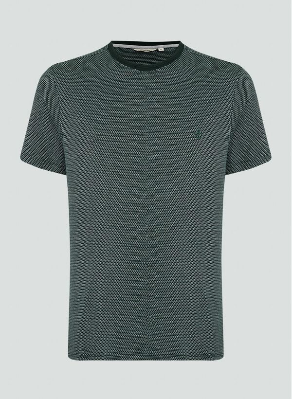 Confeccionada em malha jacquard, a Camiseta possui modelagem mais reta ao corpo e comprimento tradicional, mangas curtas, decote redondo em ribana, detalhe logo bordado no peito e acabamento pespontado.