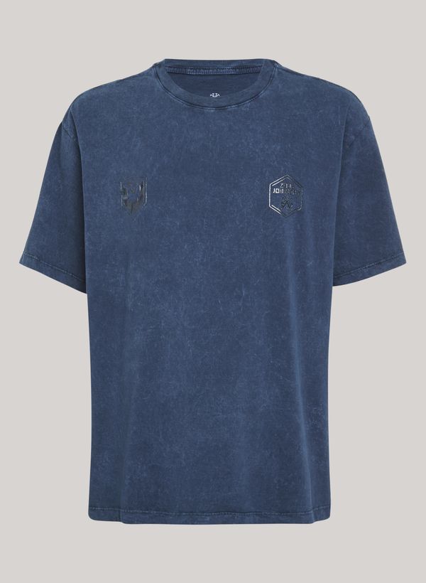 Confeccionada em malha com lavagem marmorizada, a Camiseta possui modelagem regular fit, gola careca, estampa frontal e posterior em foil metalizado, mangas curtas e acabamento pespontado.