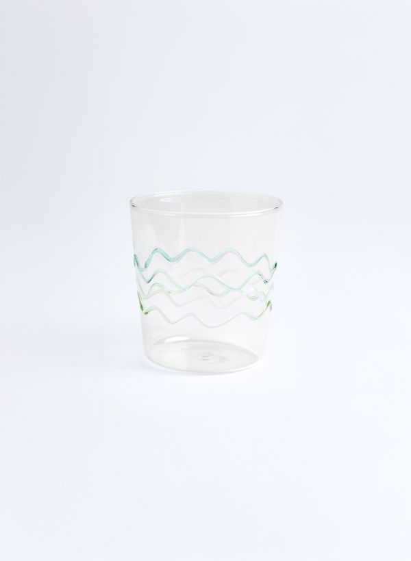 O Copo Baixo Waves é produzido artesanalmente em vidro cilíndrico translúcido incolor. Possui detalhes de aplicação na superfície externa em formato de ondas em tons de azul, verde e branco. Por conter acabamentos manuais deve haver pequenas variações de formas, cores e tamanhos entre as peças, tornando assim, cada peça única.