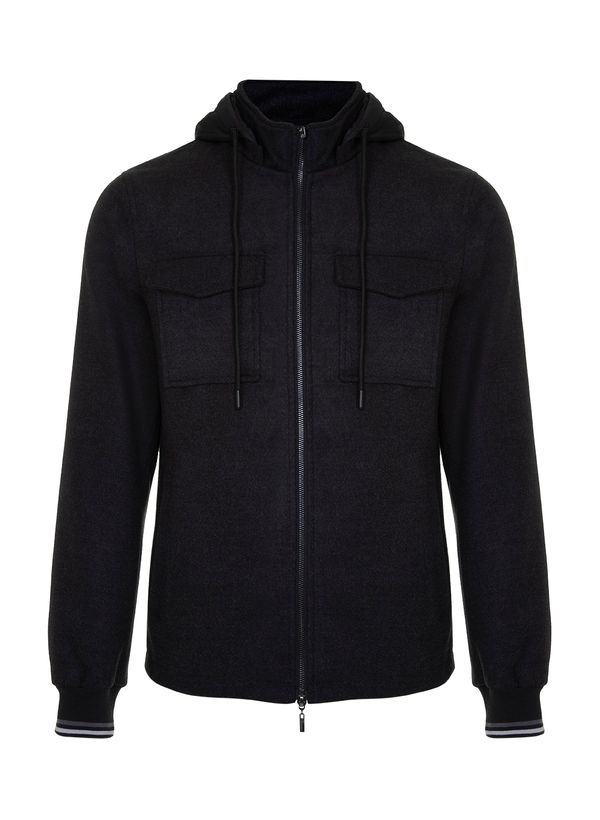 Confeccionada em tecido plano, a Jaqueta possui modelagem alfaiataria, fechamento frontal por zíper, gola levemente alta com capuz e cordões para ajuste, mangas longas com punhos canelados, bolsos frontais com fechamento por botões e acabamento pespontado.