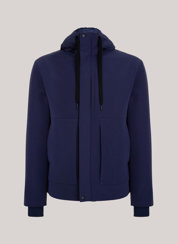 A Jaqueta possui modelagem relaxed fit, gola alta com gorro e cordão, bolsos frontais, mangas longas, fechamento frontal por zíper e botão e acabamento pespontado.