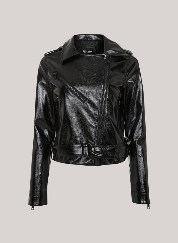 Confeccionada em material sintético, a Jaqueta possui modelagem reta, bolsos frontais, mangas longas com zíper nos punhos, fechamento frontal por zíper, gola clássica, cinto aplicado na barra e acabamento pespontado.