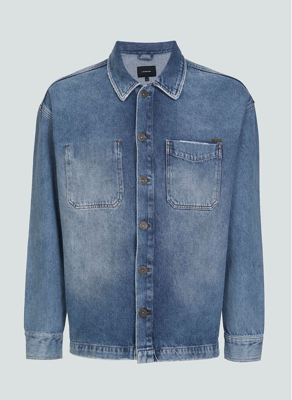 Confeccionada em jeans, a Overshirt possui gola de camisa, bolso chanfrado na parte frontal, mangas longas, punhos com abotoamento, fechamento frontal por botões e acabamento pespontado.