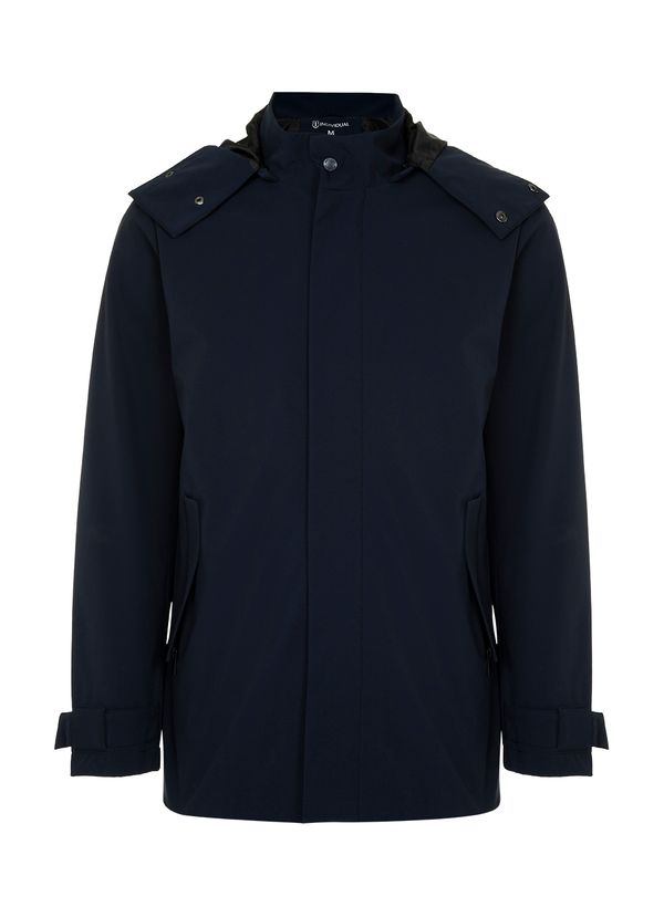 Confeccionada em tecido plano, a Jaqueta possui modelagem parka, gola levemente alta com capuz embutido, mangas longas com detalhe de martingale nos punhos e nos ombros, bolsos frontais com fechamento por botão, tecnologia impermeável, fechamento frontal por zíper e botões de pressão, detalhe posterior de logo silkado e acabamento pespontado.