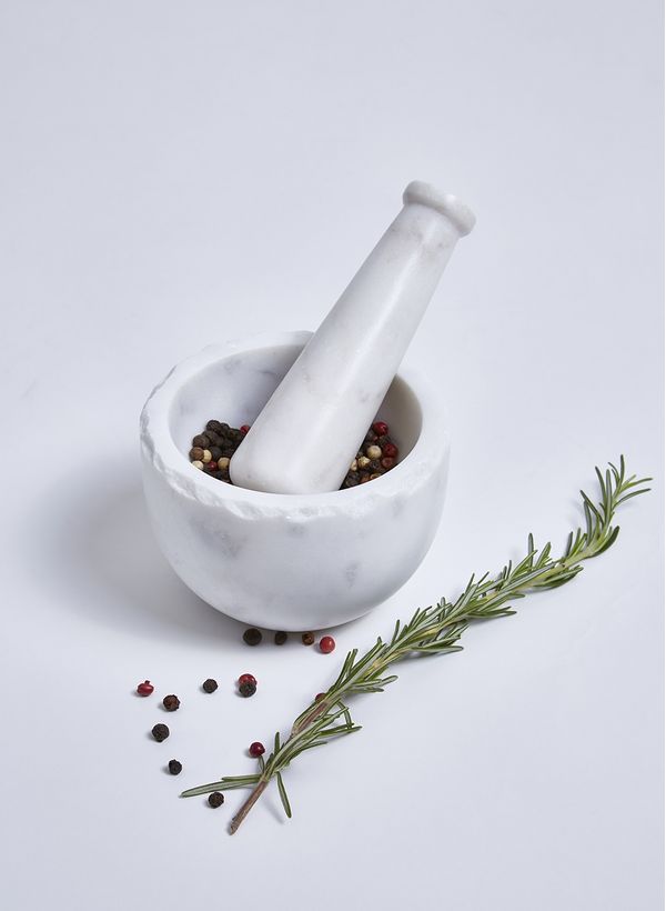 O Pilão é produzido em mármore branco e possui formato redondo. Contém um macerador no mesmo material. Pode ocorrer pequenas variações de tamanhos e formas da peça e variações de tons e padronagem do mármore, por se tratar de material natural.