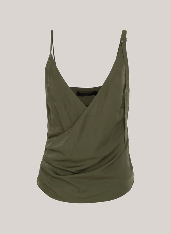 Confeccionada em tecido plano, a Regata possui modelagem mais ampla ao Corpo, caimento leve e transpassado, detalhe com regulagem em uma das alças e acabamento pespontado.