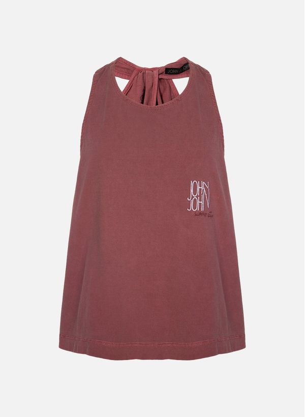 Confeccionada em malha, a Regata possui modelagem ampla, decote arredondado, alças médias com amarração no pescoço, estampa frontal localizada e acabamento pespontado.