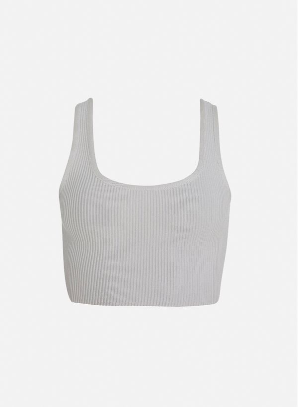 Confeccionada em tricot canelado,a Regata possui modelagem Cropped, justa ao corpo, alças de largura média e decote levemente arredondado.