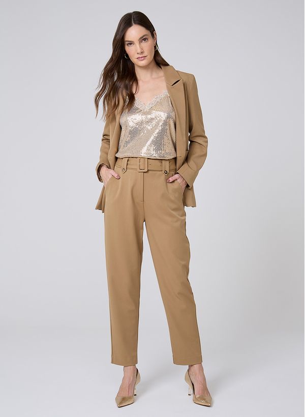 A regata é uma peça essencial para adicionar brilho e estilo ao visual, tornando-se indispensável no guarda-roupa feminino. Combine-a com calça de alfaiataria e sobreponha um blazer para um look sofisticado. Finalize com scarpins para um toque de elegância e confiança.