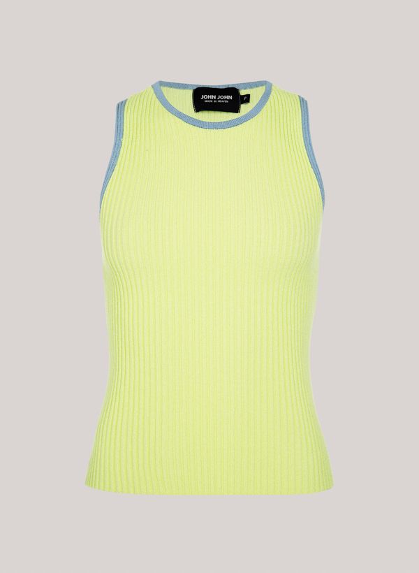 Confeccionada em tricot, a Regata possui modelagem justa, decote nadador e acabamento canelado.