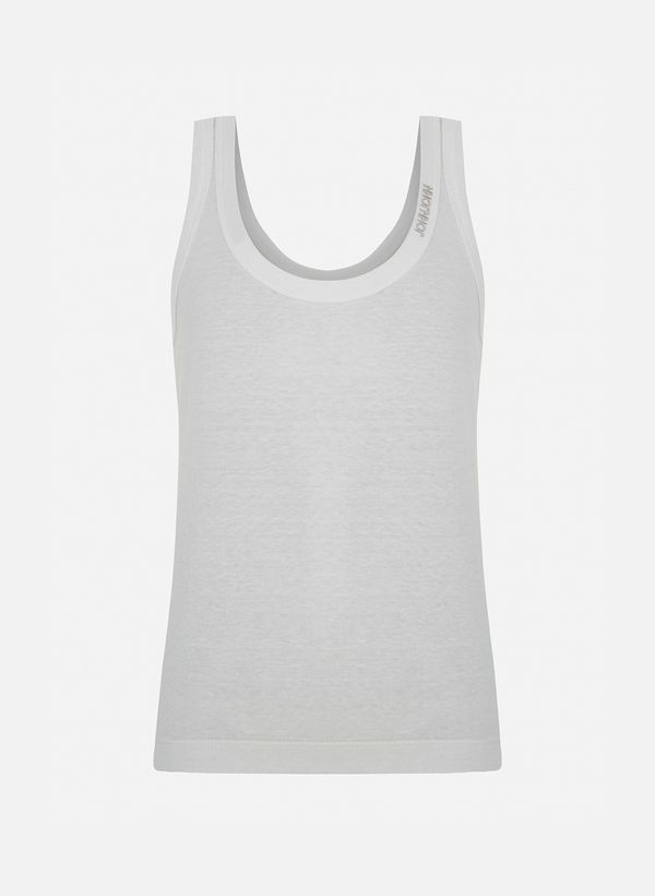 Confeccionada em malha, a Regata possui modelagem justa, alças finas, decote em "U" profundo com detalhe da logo da marca bordado, decote nas costas e acabamento pespontado.