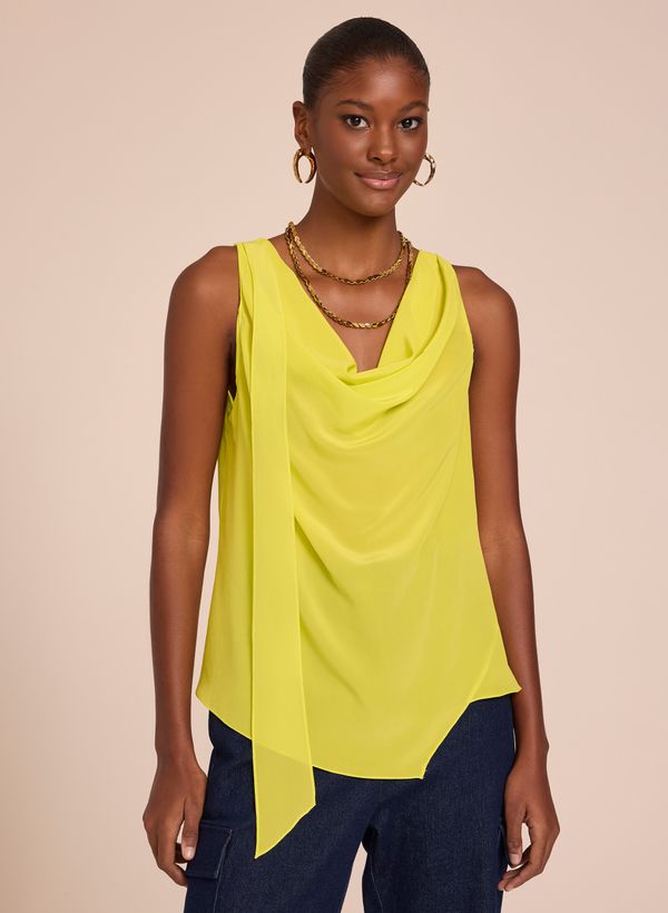Confeccionada em seda, a Regata possui caimento fluído, alça médias, faixa assimétrica aplicada e acabamento pespontado.