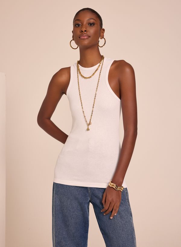 Confeccionada em malha, a Regata possui modelagem ajustada ao corpo, decote redondo, alças médias e acabamento pespontado.