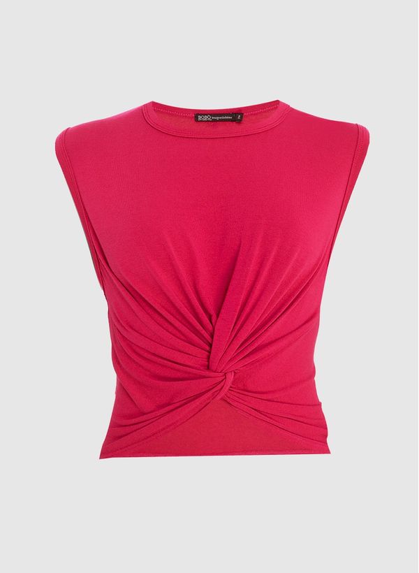 Confeccionada em malha, a Regata possui caimento ajustado ao corpo, gola redonda, detalhe frontal torcido, alças largas e acabamento pespontado.