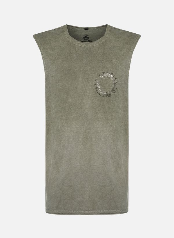 Confeccionada em malha com lavanderia estonada, a Regata possui modelagem relaxed Fit, gola careca, ombros largos, cavas alongadas, estampa frontal e posterior em relevo e acabamento pespontado.