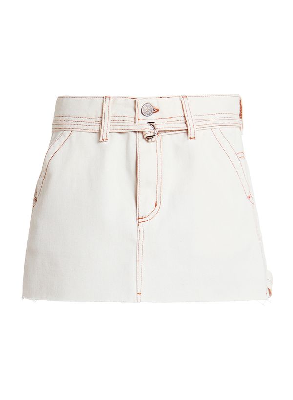 Confeccionada em sarja, a Saia possui modelagem reta, cós com passantes e cinto acoplado, bolsos, barra à fio, comprimento curto, acabamento pespontado, fechamento frontal por zíper e botão.