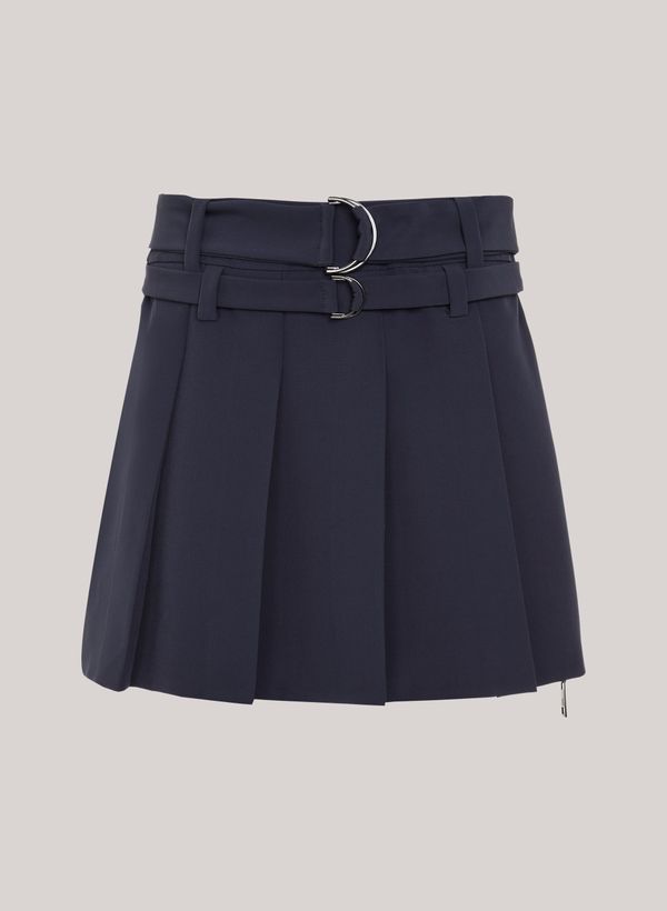 Confeccionada em tecido plano, a Saia possui modelagem evasê, cós com passantes e cintos duplos aplicados, fechamento lateral por zíper, plaquinha metalizada personalizada, comprimento curto e acabamento pespontado.