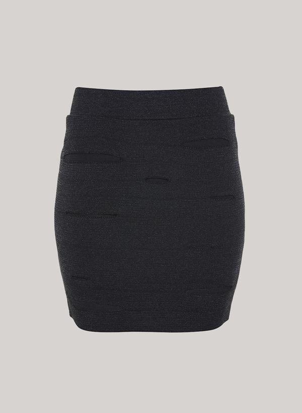 Confeccionada em tricot, a Saia possui modelagem justa, cós com elástico, detalhes em recortes por toda a peça, comprimento curto e acabamento canelado.