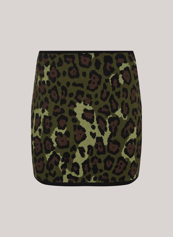 Confeccionada em tricot com estampa de leopardo, a Saia possui modelagem justa, comprimento curto e acabamento canelado.