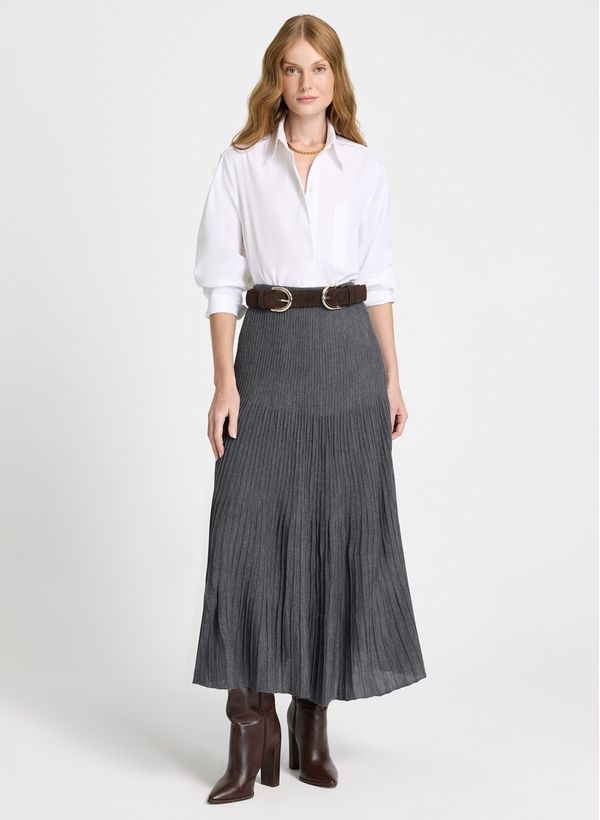 Atemporal, a Saia Duda é uma peça elegante para montar looks que vai do boho chic ao trendy. Combine com acessórios, camisa off white, cinto e botas de cano longo de salto.