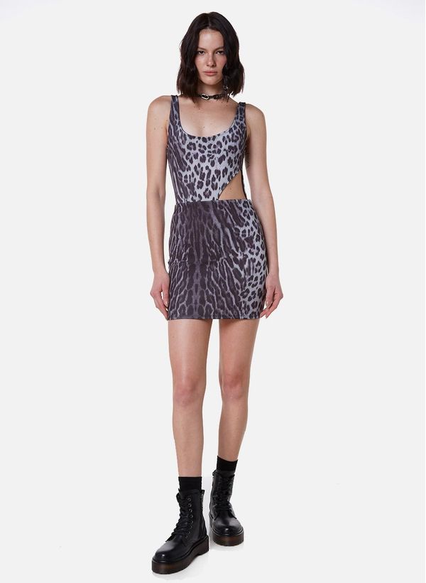Confeccionada em malha black com estampa em animal print, a Saia possui modelagem reta e comprimento curto.