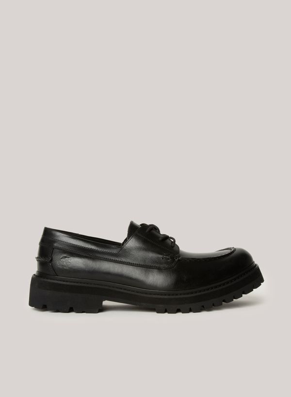 Produzido em couro, o Sapato possui cano baixo, fechamento por cadarço, logo John John aplicado na palmilha, solado preto tratorado e acabamento pespontado.