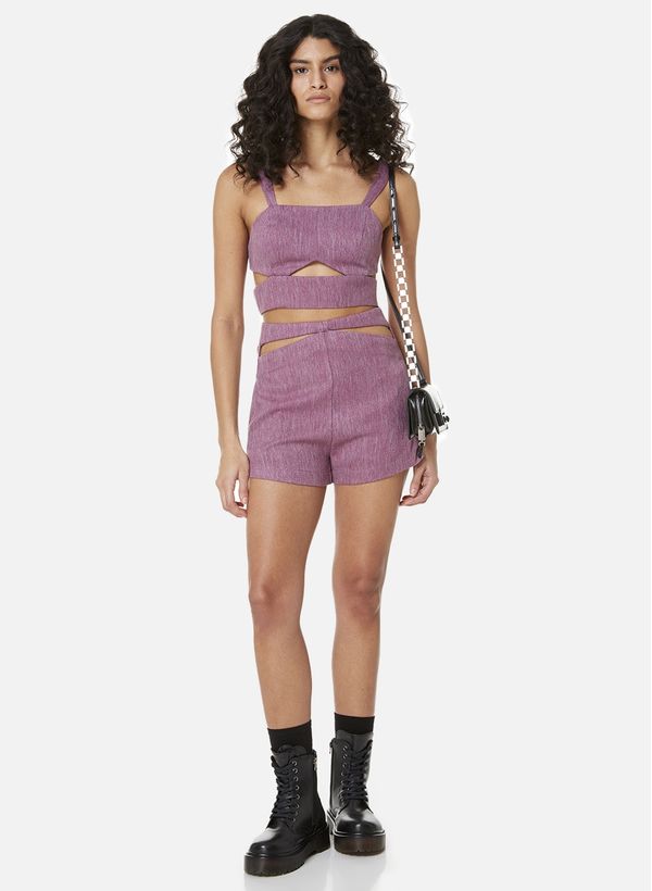 Confeccionado em tecido plano, o Shorts possui modelagem mais ajustada ao corpo, comprimento lateral curto, cintura alta, recorte na cintura, forro e acabamento interno.