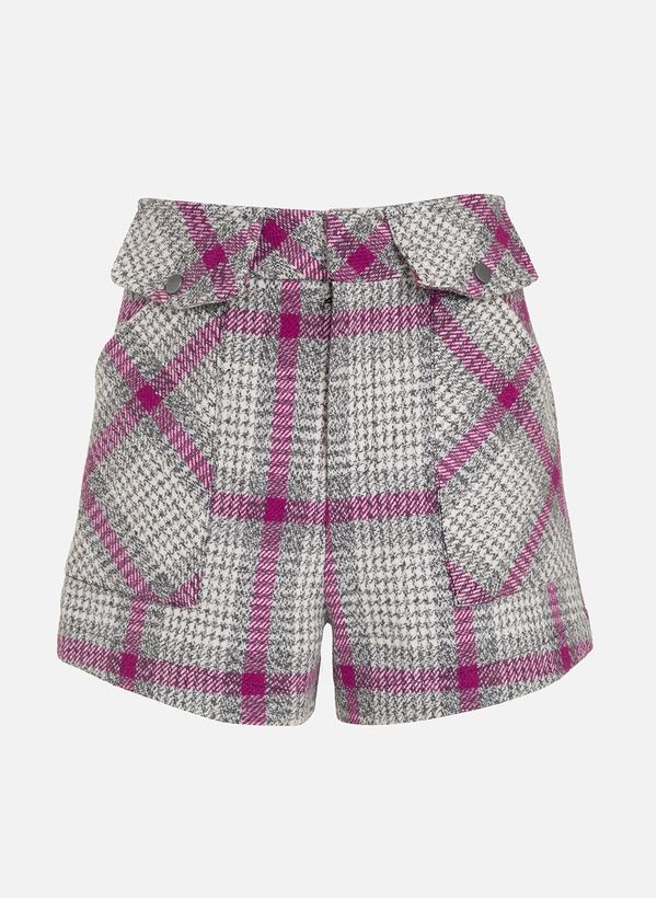 Eleve seu look com o Shorts Chiara, uma peça de alfaiataria ousada em xadrez que é a aposta perfeita para um estilo urbano e moderno.