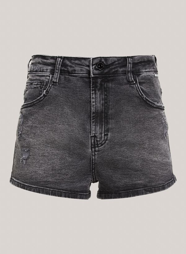 boy alto, cós com passantes, cinco bolsos, fechamento frontal por zíper e botão,