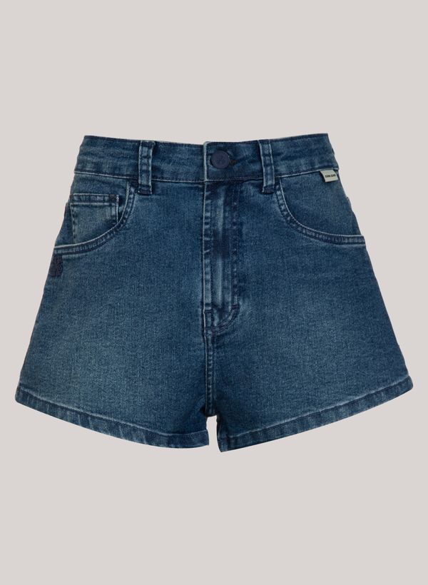 Confeccionado em jeans, o Shorts possui modelagem boy, cós com passantes, cinco bolsos, fechamento frontal por zíper e botão, etiqueta externa aplicada e acabamento pespontado.