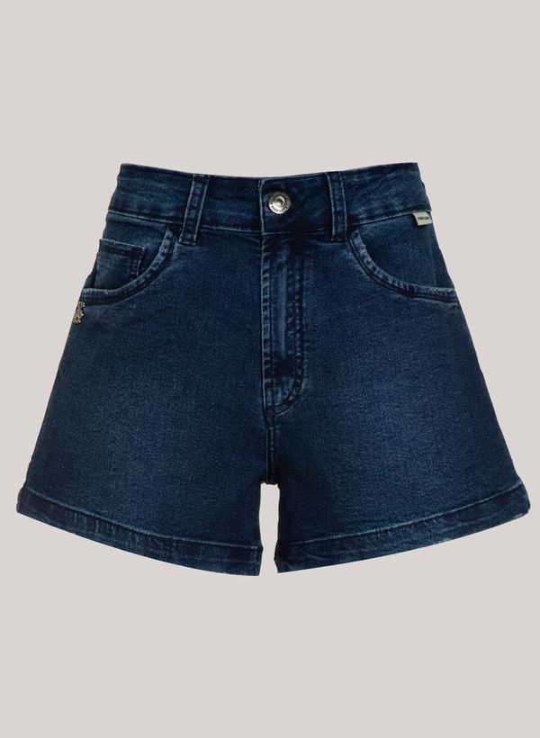 Confeccionado em jeans, o Shorts possui modelagem evasê, cós com passantes, cinco bolsos, fechamento frontal por zíper e botão, etiqueta externa aplicada e acabamento pespontado.
