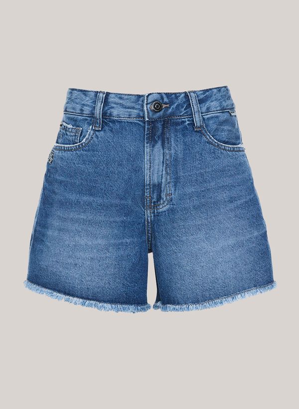 Confeccionado em jeans, o Shorts possui modelagem evasê, cós com passantes, bolsos frontais e posteriores, fechamento frontal por zíper e botão, etiqueta externa aplicada, barra cortada a fio e acabamento pespontado.
