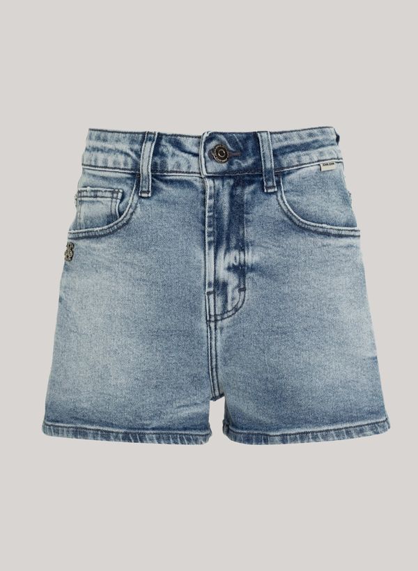 Confeccionado em jeans, o Shorts possui modelagem regular fit, cós com passantes, bolsos frontais e posteriores, fechamento frontal por zíper e botão, etiqueta externa aplicada e acabamento pespontado.