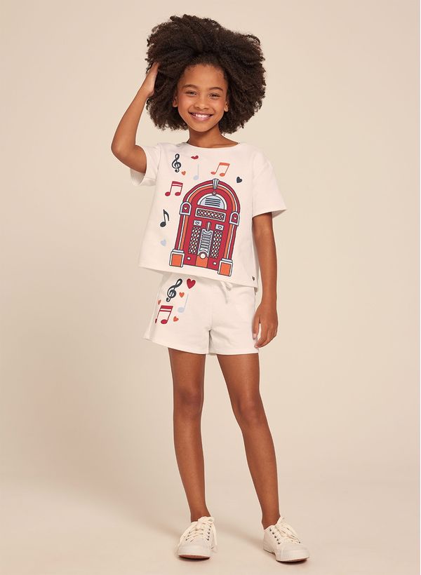 O Shorts é confeccionado em malha, possui modelagem reta, cós aplicado, bolsos frontais, cordão para amarração, estampada localizada na lateral, comprimento curto e acabamento pespontado.