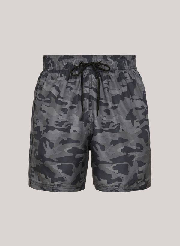 Confeccionado em tecido plano com padronagem estampada, o Shorts possui modelagem reta, cós com elástico e cordão para amarração, bolsos frontais, bolso posterior, etiqueta externa aplicada e acabamento pespontado.