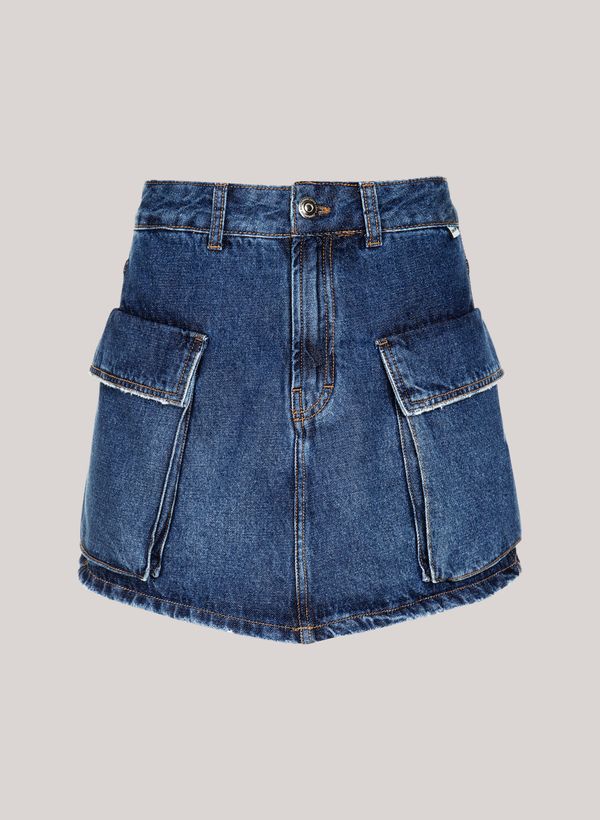 Confeccionado em jeans, o Shorts Saia possui modelagem reta, cós com passantes, bolsos laterais tipo cargo, bolsos posteriores, fechamento frontal por zíper e botão, etiqueta externa aplicada, comprimento curto e acabamento pespontado.